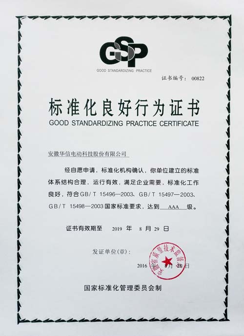 標(biāo)準(zhǔn)化良好行為證書AA···